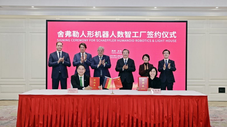 11月25日,舍弗勒人形機器人數智工廠項目簽約落戶蘇州太倉。蘇州市委書記范波會見了舍弗勒集團家族董事會股東及監事會主席喬治F.W.舍弗勒一行,共同見證項目簽約。